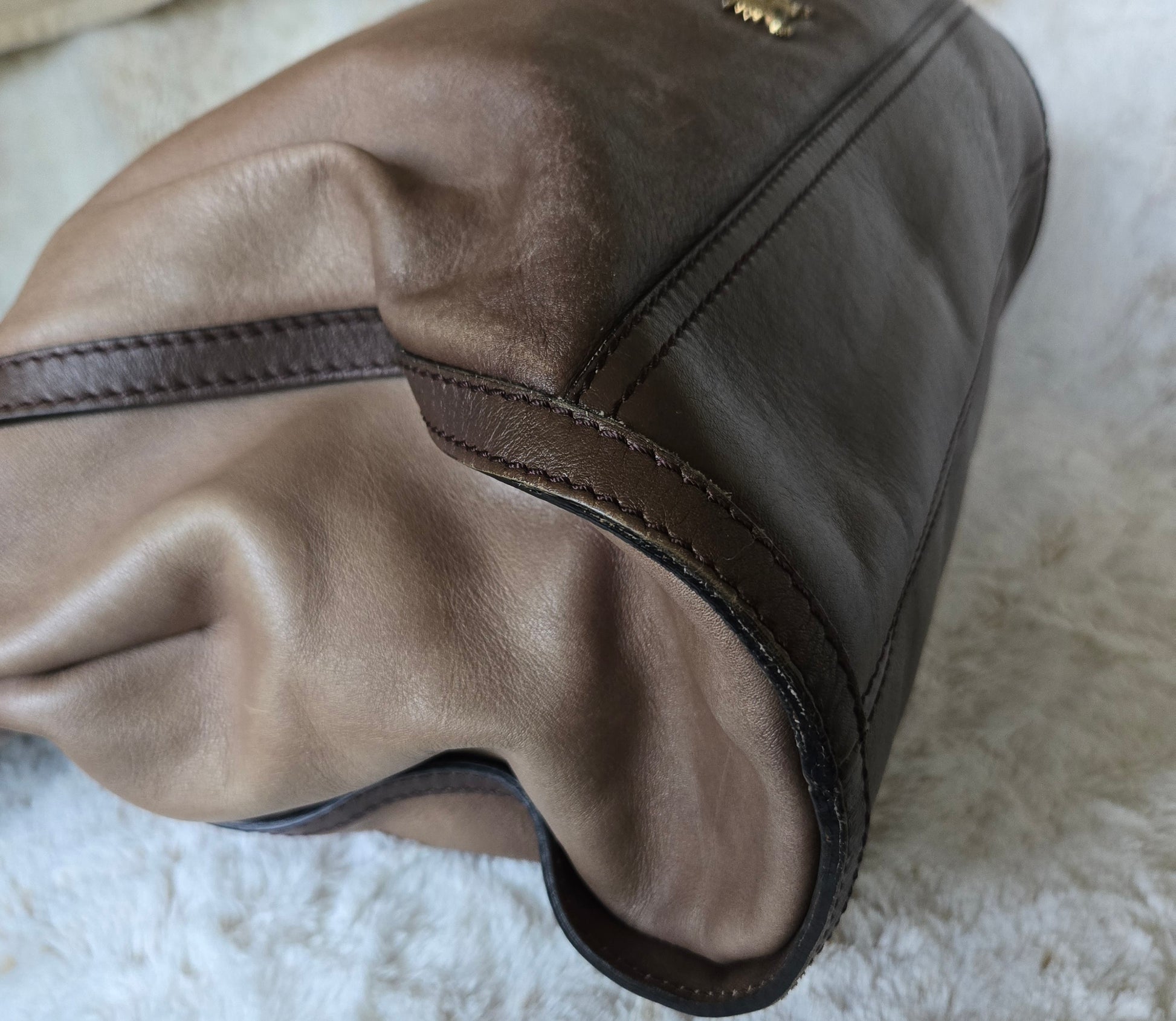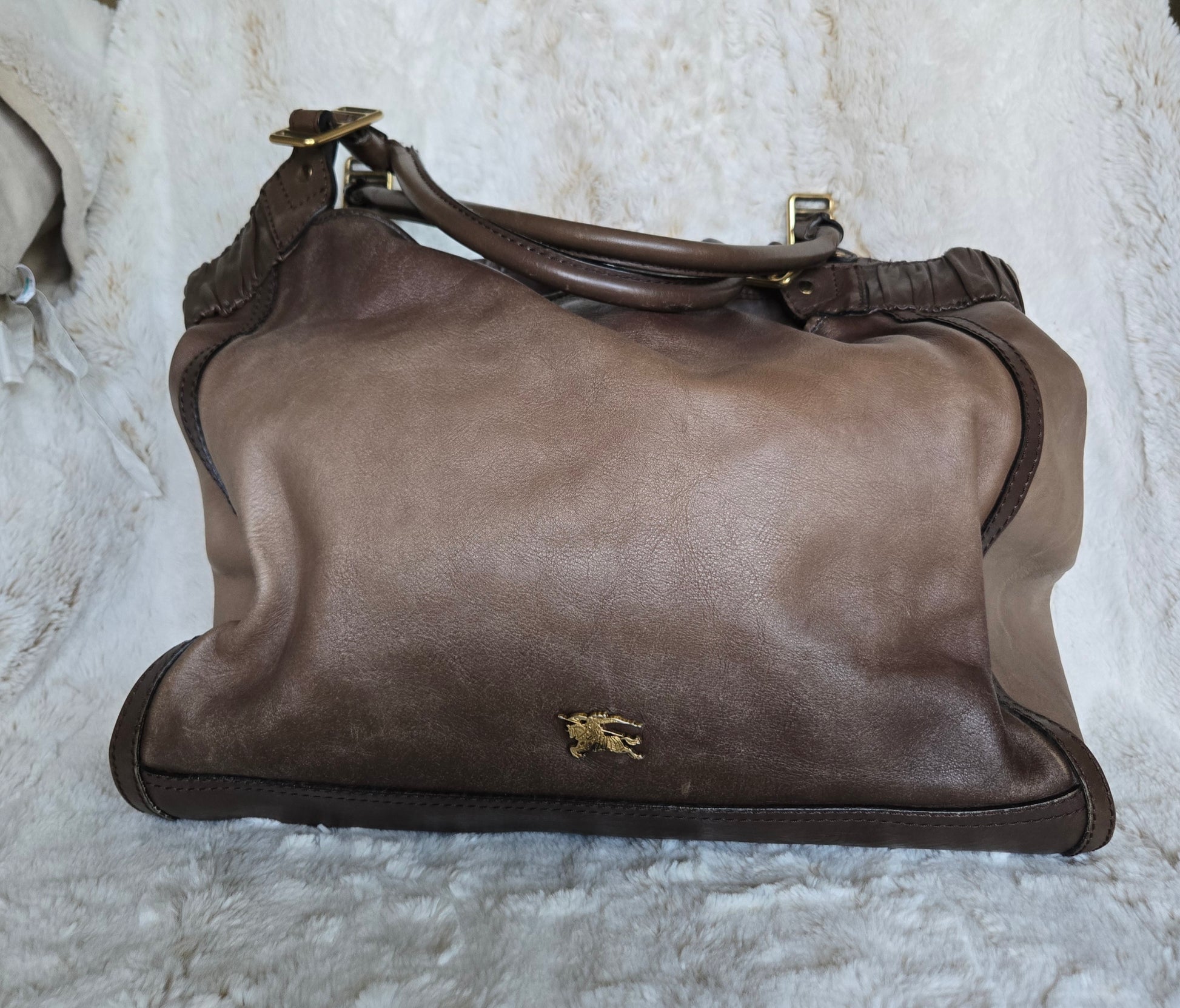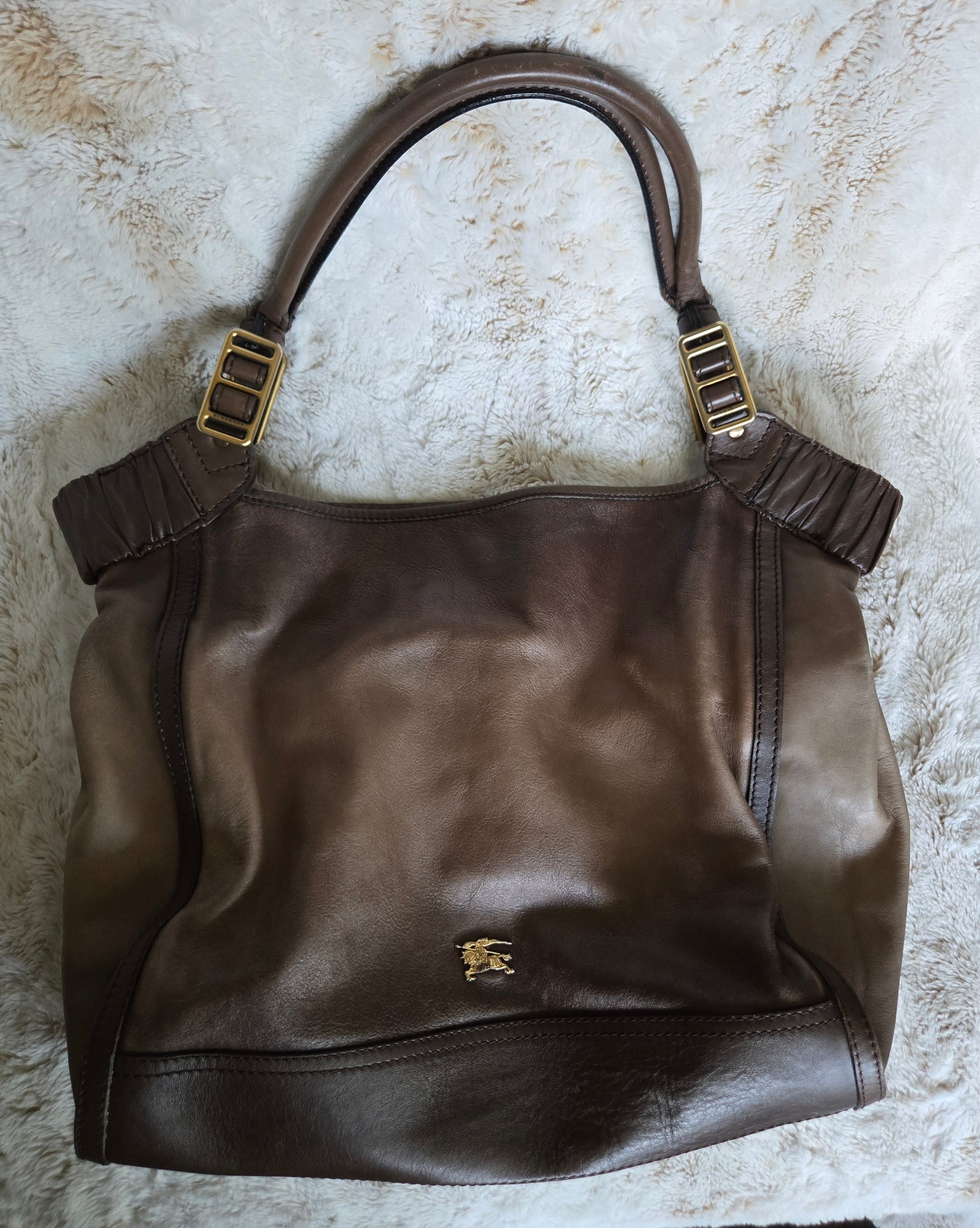 The perfect choice for special occasions, this Burberry tote is true to its existence. Crafted from brown ombre leather, the bag is fabulously built and extremely alluring. Held by dual handles, it has a fabric-lined interior has zip and slip pockets.
