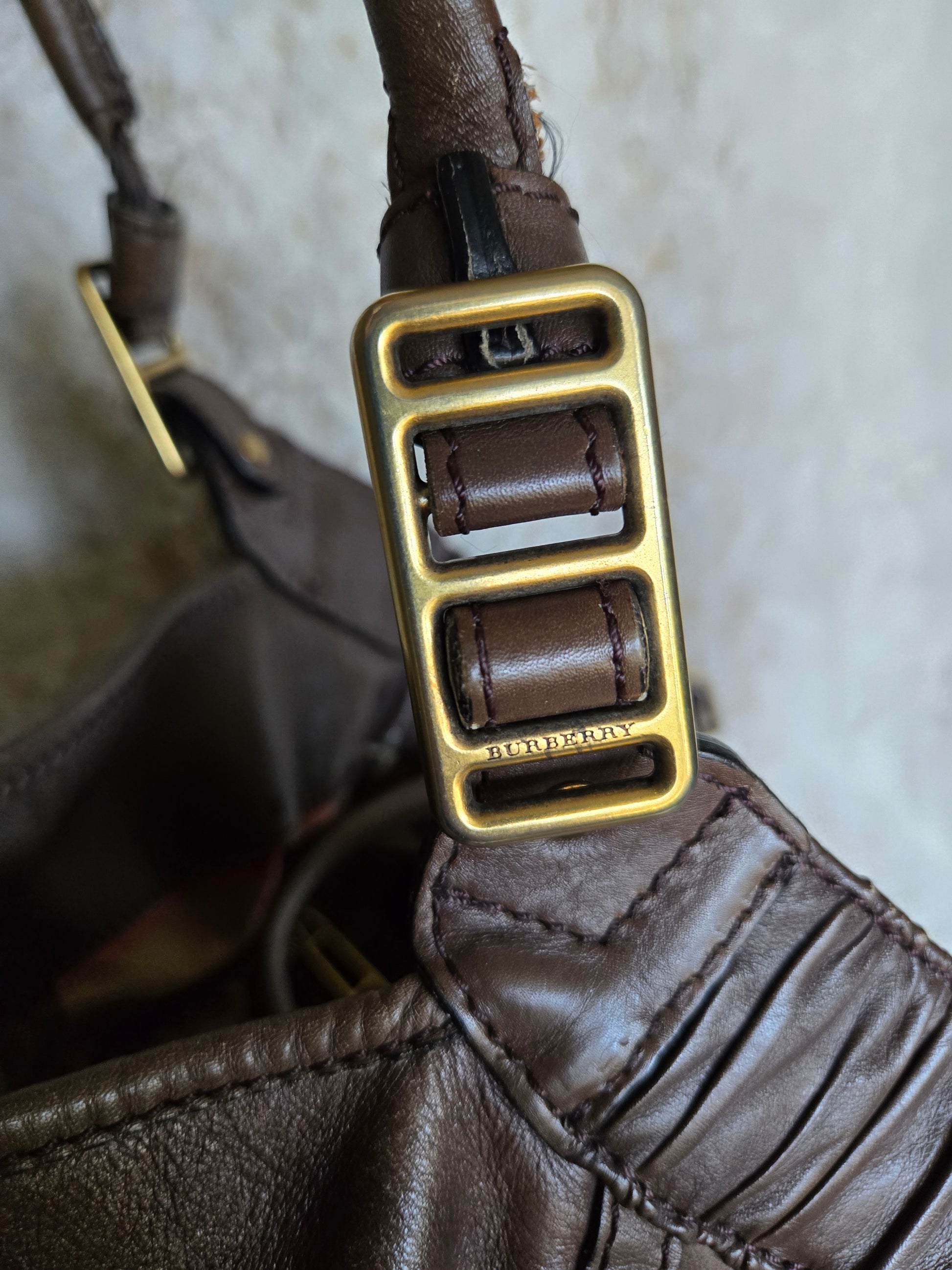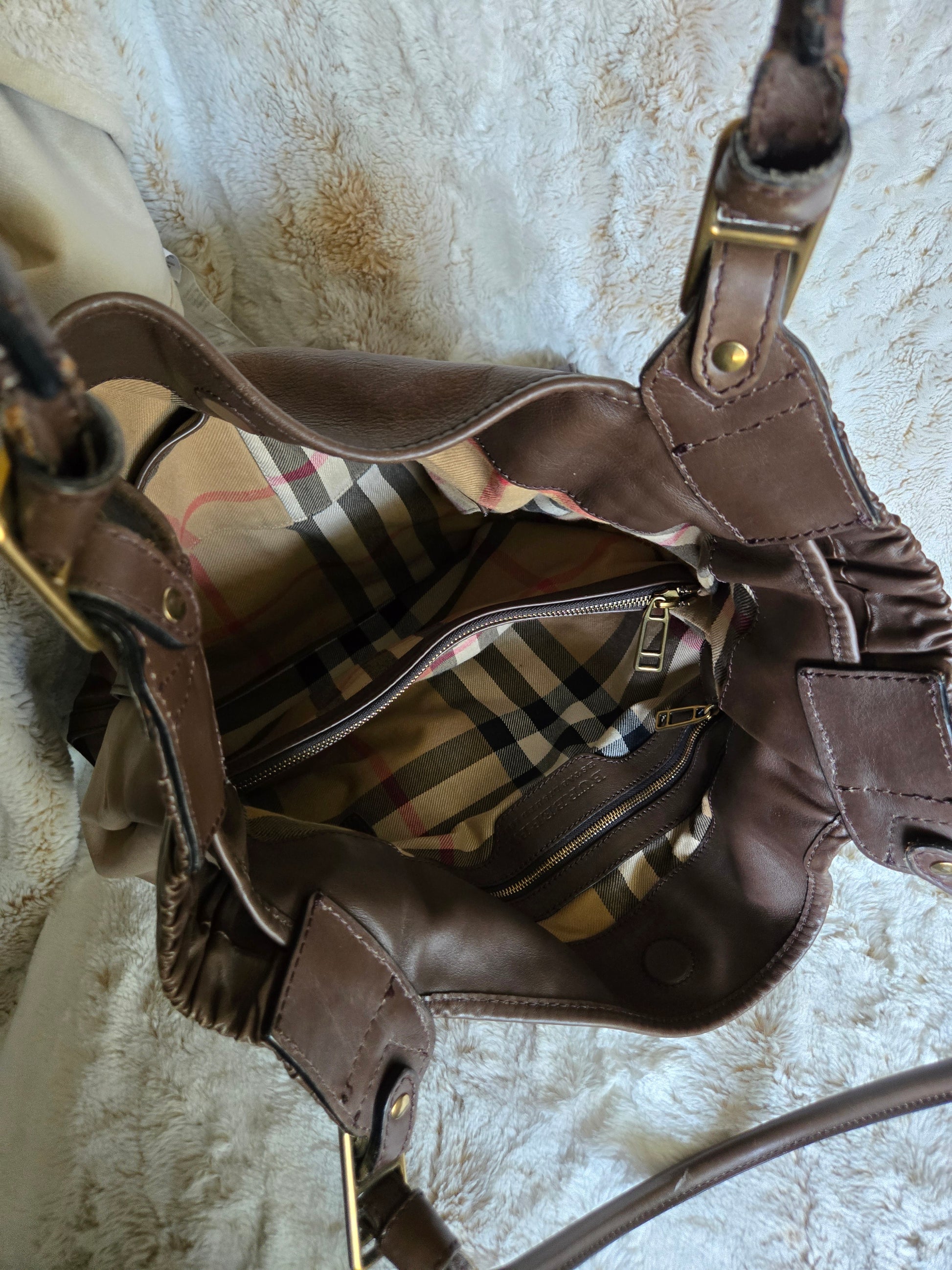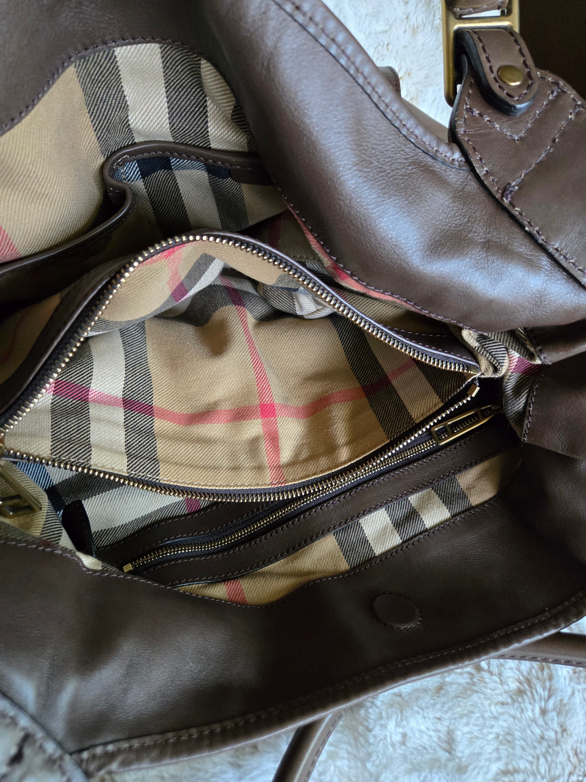 The perfect choice for special occasions, this Burberry tote is true to its existence. Crafted from brown ombre leather, the bag is fabulously built and extremely alluring. Held by dual handles, it has a fabric-lined interior has zip and slip pockets.