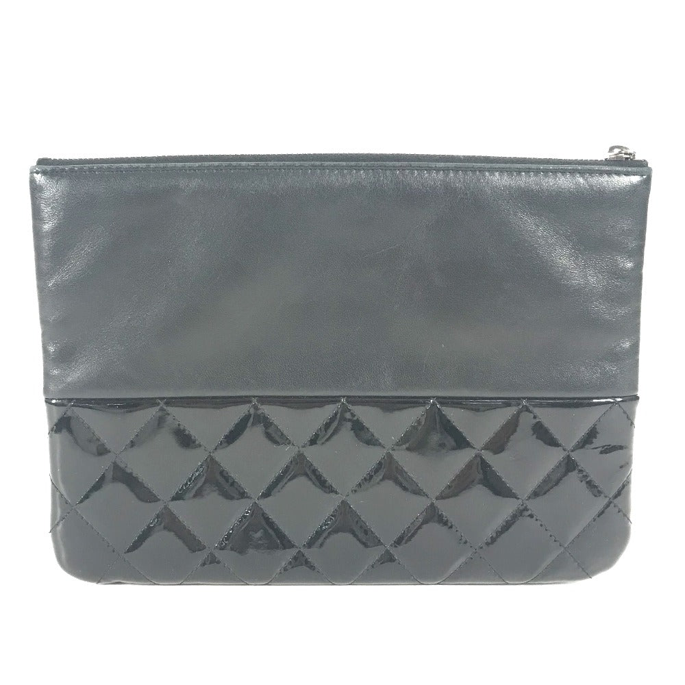CHANEL Clutch bag Leather, Patent Leather black CC COCO Mark logo