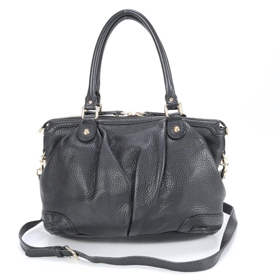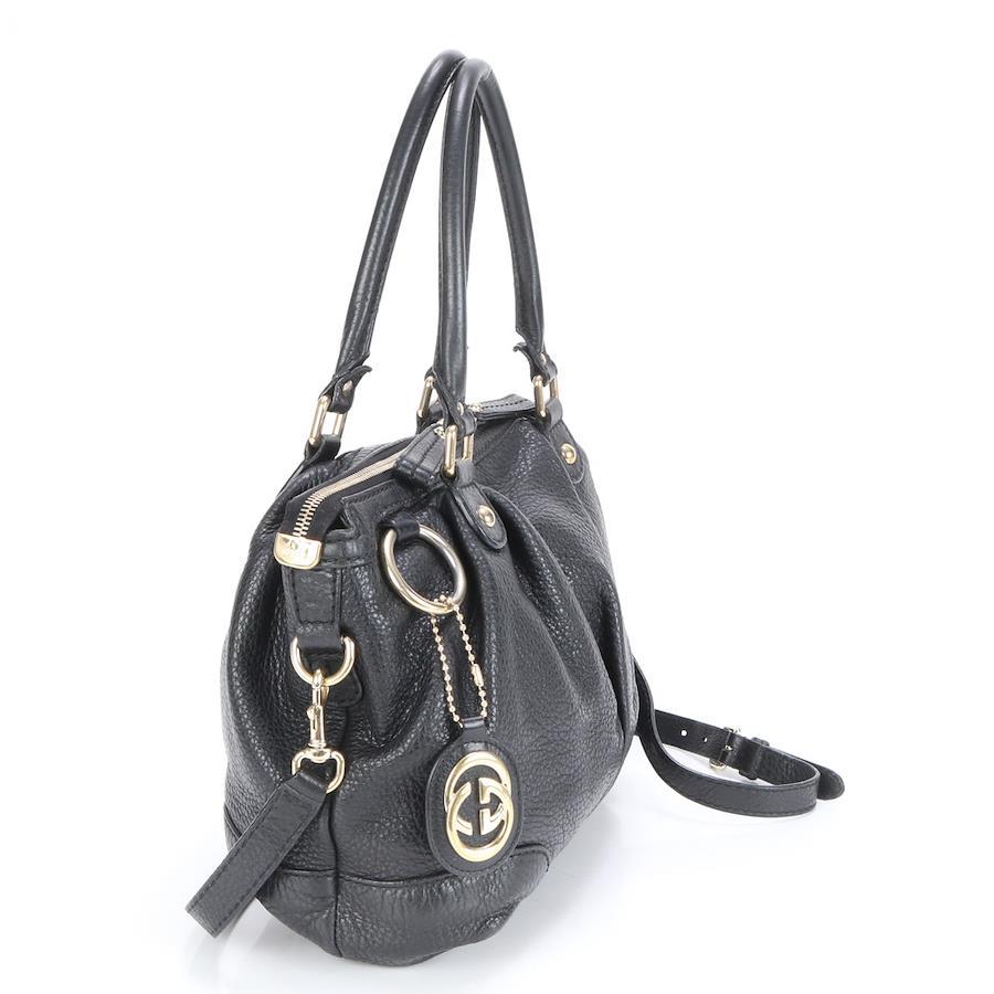 The product is a Gucci shoulder bag made of black leather, designed specifically for women. Known for its luxury and stylish designs, Gucci is a prestigious brand that exudes elegance and sophistication. This bag is a perfect accessory for any woman looking to make a fashion statement while carrying her essentials. Made from high-quality leather in a classic black color, it is a versatile piece that can be easily paired with a variety of outfits for any occasion.