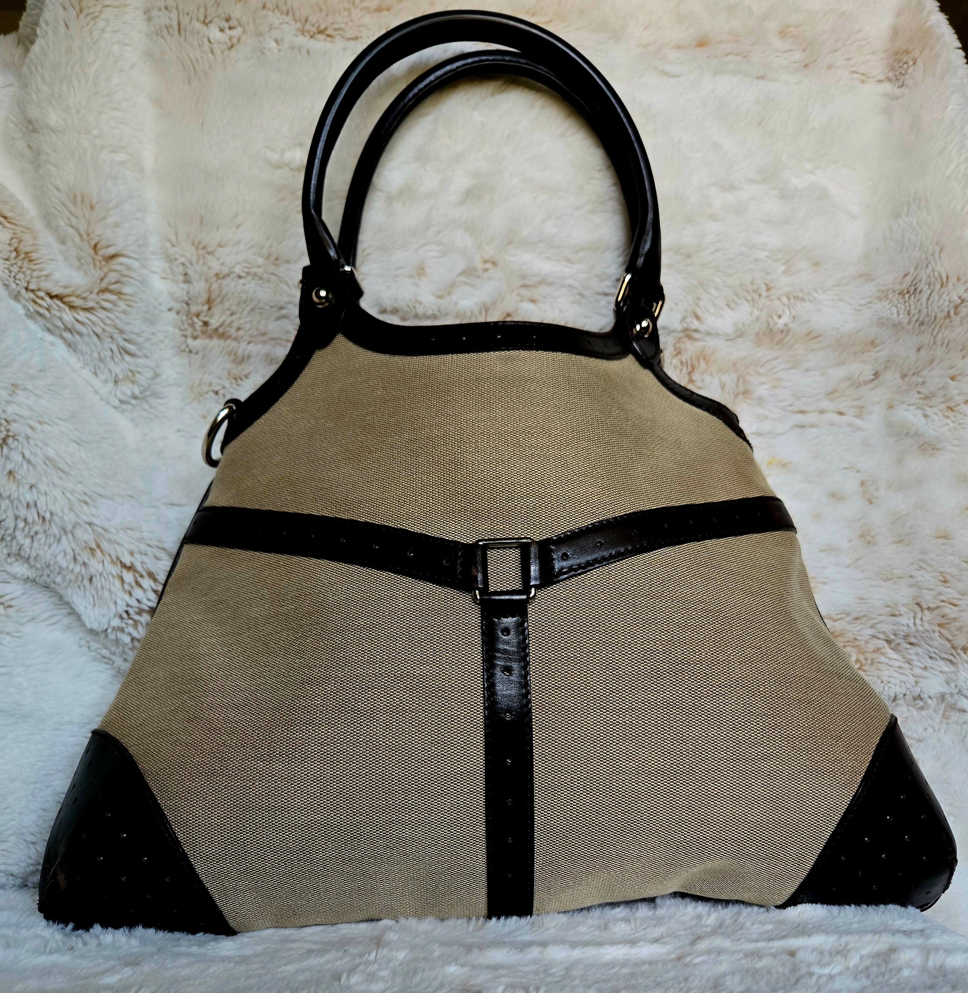 GUCCI Jackie 1961 Handbag Rare canvas Brown Beige Sherry Line Interlocking G
