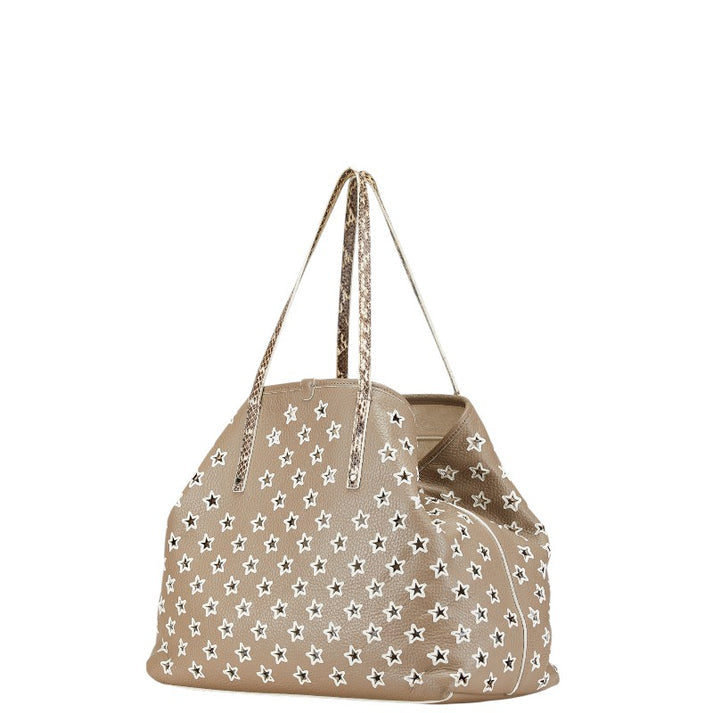 Jimmy Choo Leather Python Star Punching 2way Bag Beige Tote