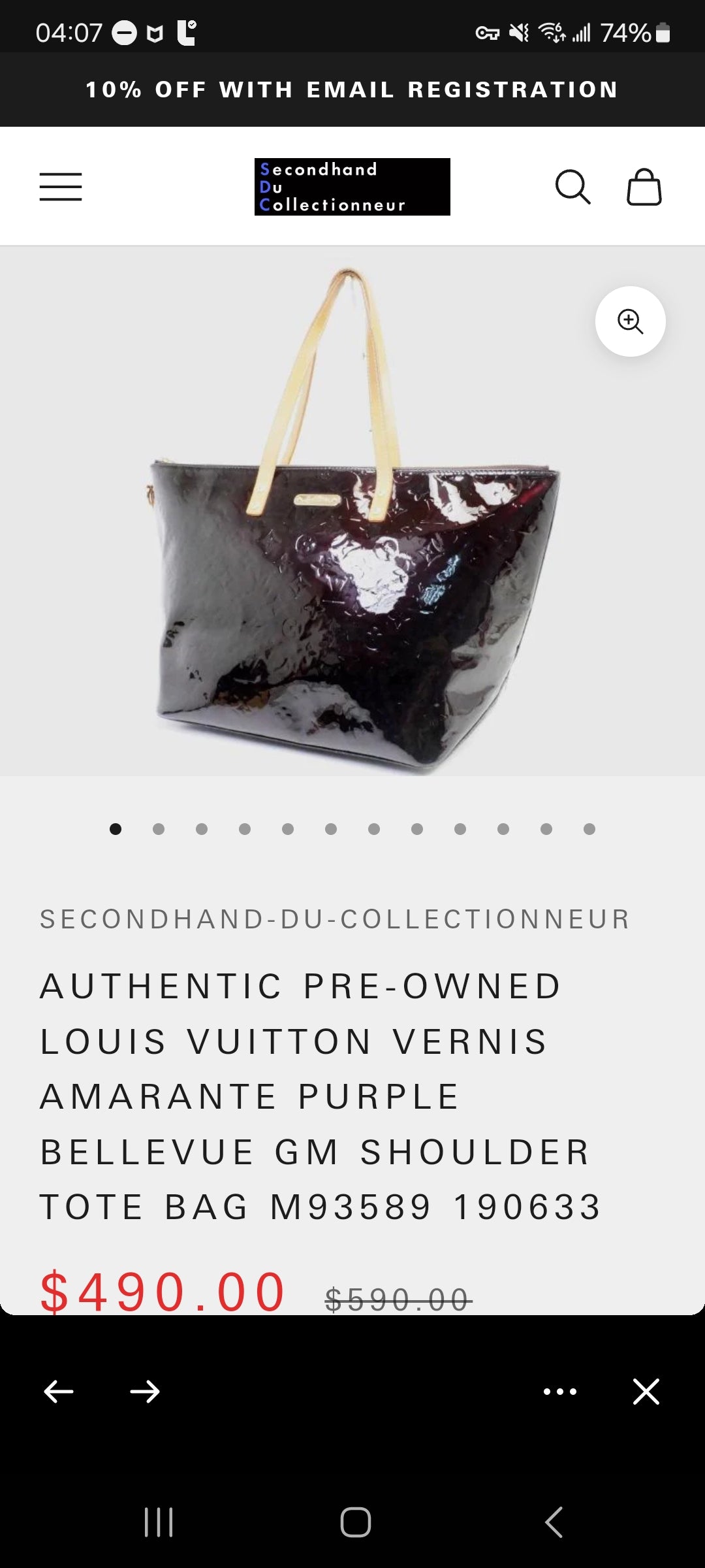 LOUIS VUITTON VERNIS AMARANTE PURPLE BELLEVUE GM SHOULDER TOTE BAG